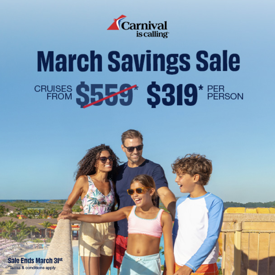 HUGE March Sale for Carnival Cruise Line